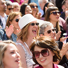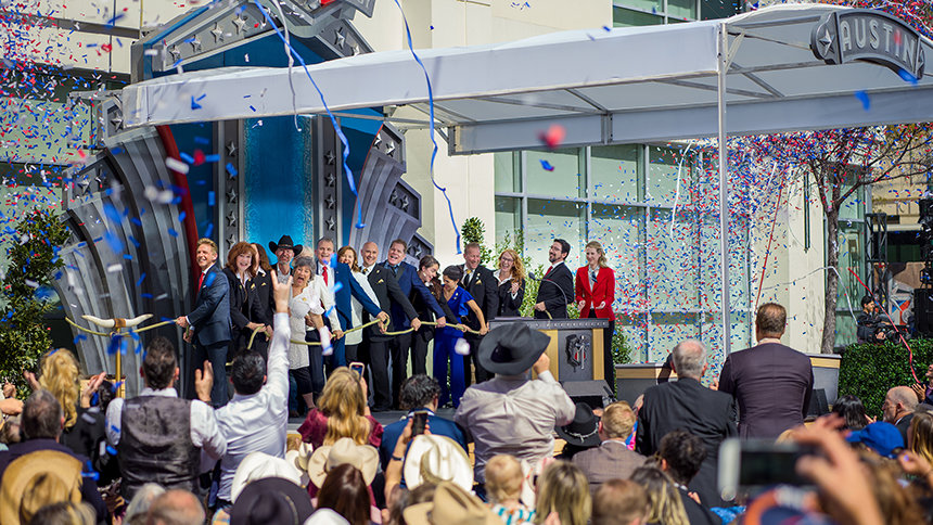 An elated crowd hails a ribbon-cutting in the capital city, celebrating Texas freedom on the city’s main social corridor, The Drag.
